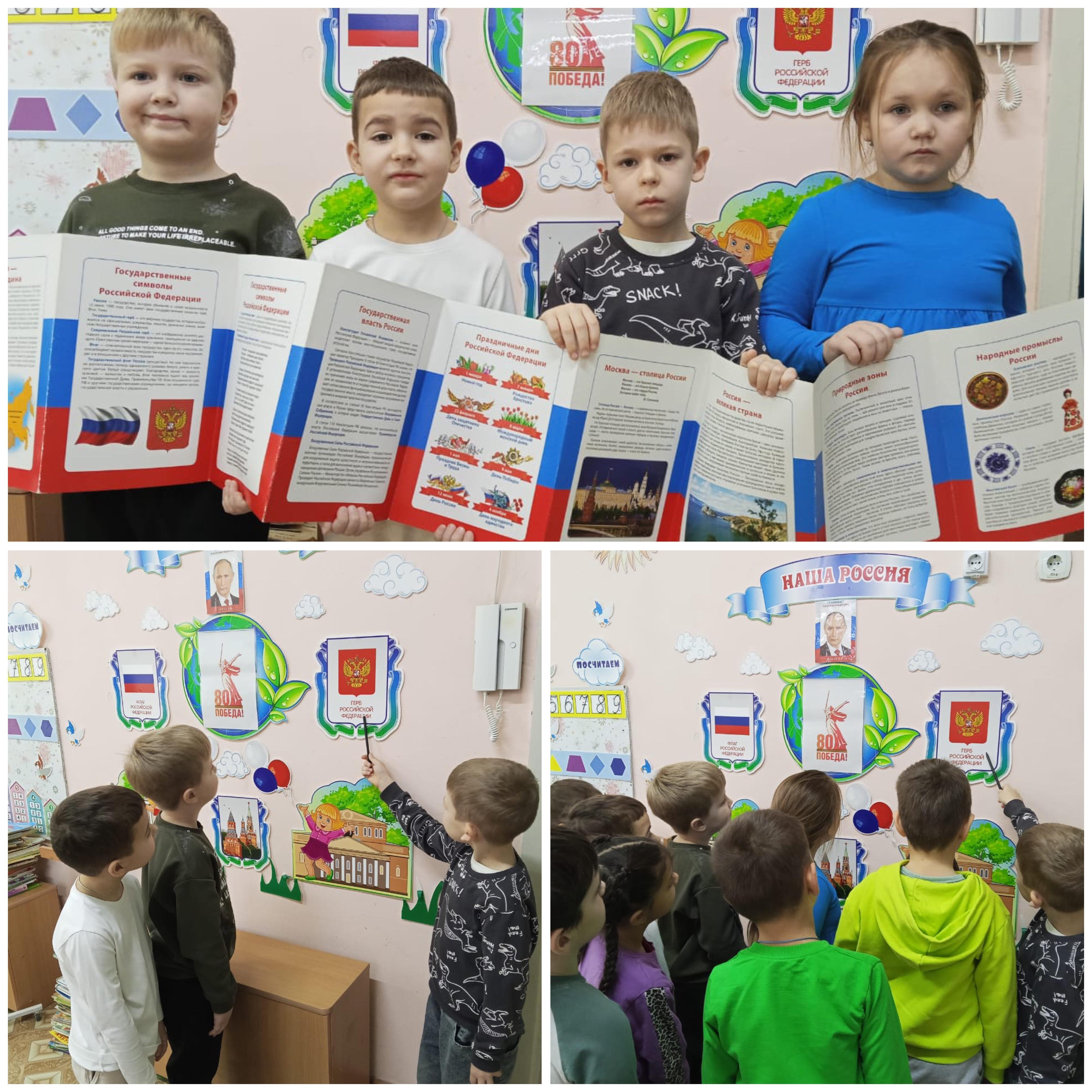 30 ноября в нашей стране отмечается День герба Российской Федерации. В целях формирования представления о сущности и значении герба России как государственного символа РФ, воспитания гордости и уважения к своей стране, Родине, с дошкольниками прошли разнообразные мероприятия по теме «У России величавой на гербе орел двуглавый». Был открыт клуб художественной литературы, после работы, которого прошел ситуативный разговор: «Моя страна - моя Россия». Мальчиков привлекли игры со строительным материалом «Дом построим – будем жить». В подготовительной к школе группе прошла квест – игра: «Какие народы живут в России». В творческой мастерской дети, используя разные материалы, создали работу «Наш герб».